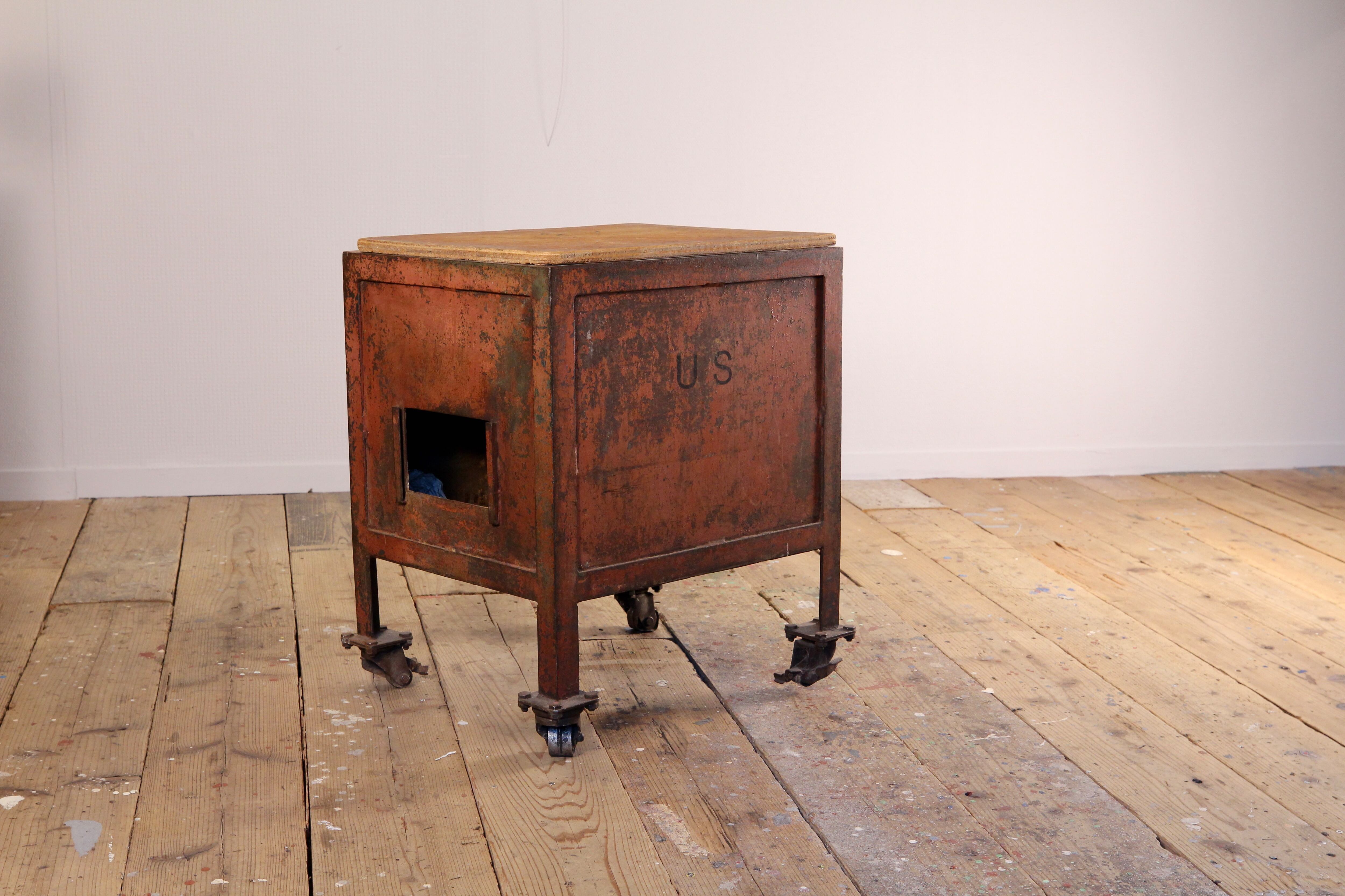 日本国内の工場で使用されていたアイアン製キャスター付きサイドテーブルは、シンプルでスタイリッシュなデザインが特徴です。